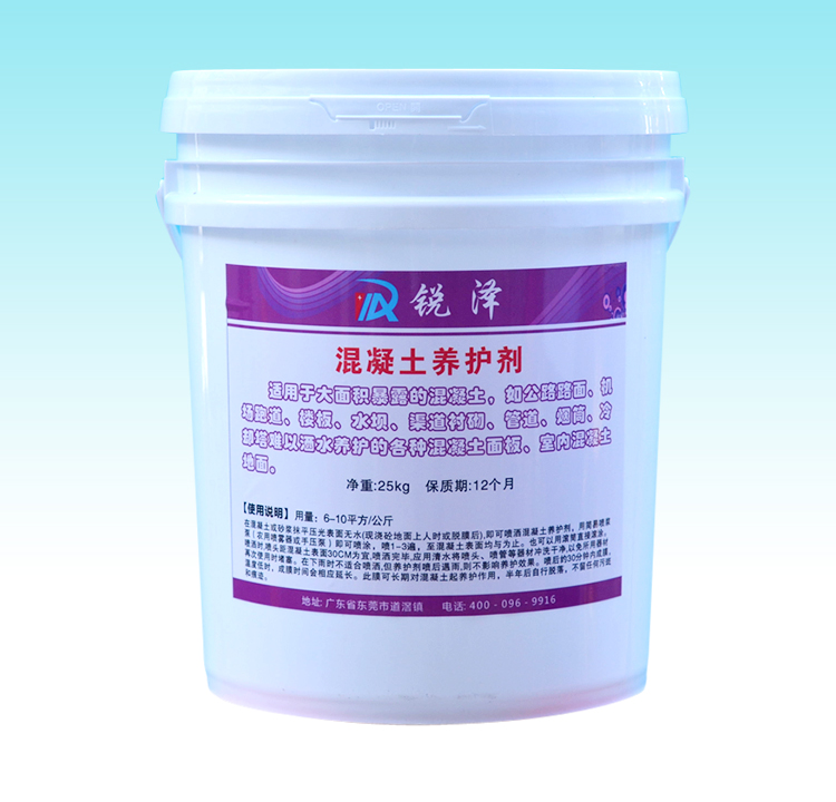 混凝土養(yǎng)護劑又叫做混凝土防護劑、混凝土養(yǎng)護液,是采用現(xiàn)代高科技制備的一種新型高分子制劑。是一種適應(yīng)性非常廣泛的液體成膜化合物,該產(chǎn)品為水性、無毒不燃,使用方便,將本養(yǎng)護劑噴涂在混凝土或砂漿表面,當(dāng)水份蒸發(fā)到一定程度,能迅速形成一層無色、不透水的薄膜,可阻止混凝土或砂漿中的水份蒸發(fā),減少混凝土收縮和龜裂。一噸養(yǎng)護劑可以節(jié)約2000噸水。